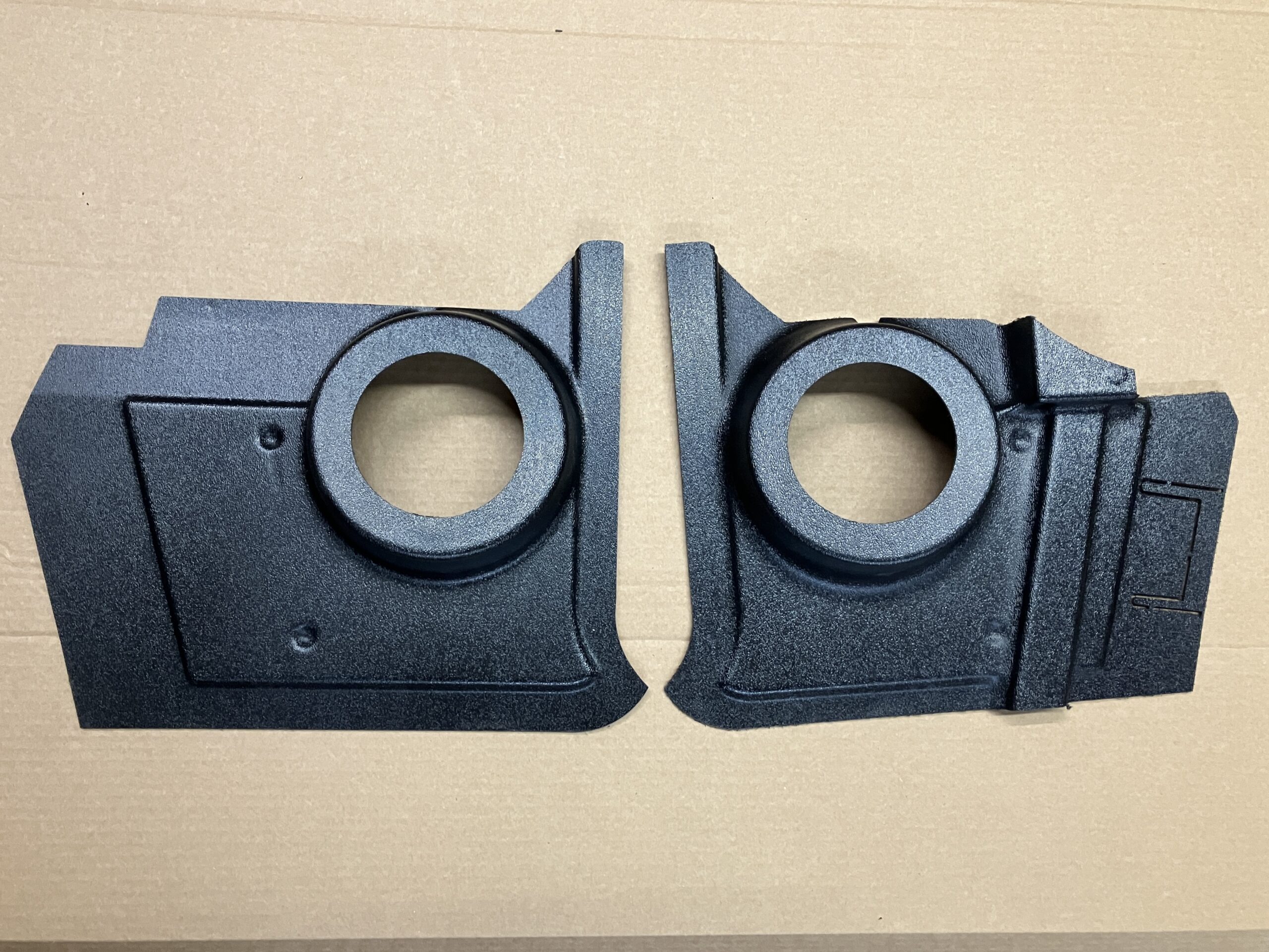 Installation: Remove whatever panel/carpet you currently have. Test fit the panels and make any necessary modifications to the areas listed above. I recommend pre drilling the panel with a 3/16 drill first in your chosen locations. I also recommend mounting the speakers into the panels and then removing them. This will make installing them easier at the end. The panels are easier to locate without the weight of the speaker. Although I supply self drilling screws I highly recommend drilling a 1/8″ pilot hole first.