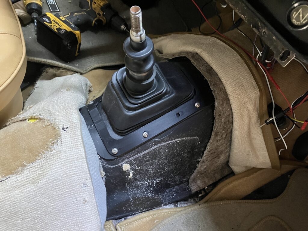 The output shaft may be a little high but I won’t know until I get the drive shaft. The engine tilt is within .01 degrees of where it was with the stock transmission and less than wonderful rubber transmission mounts. The shifter is centered on the tunnel hole but may be a little high. Minor stuff really.